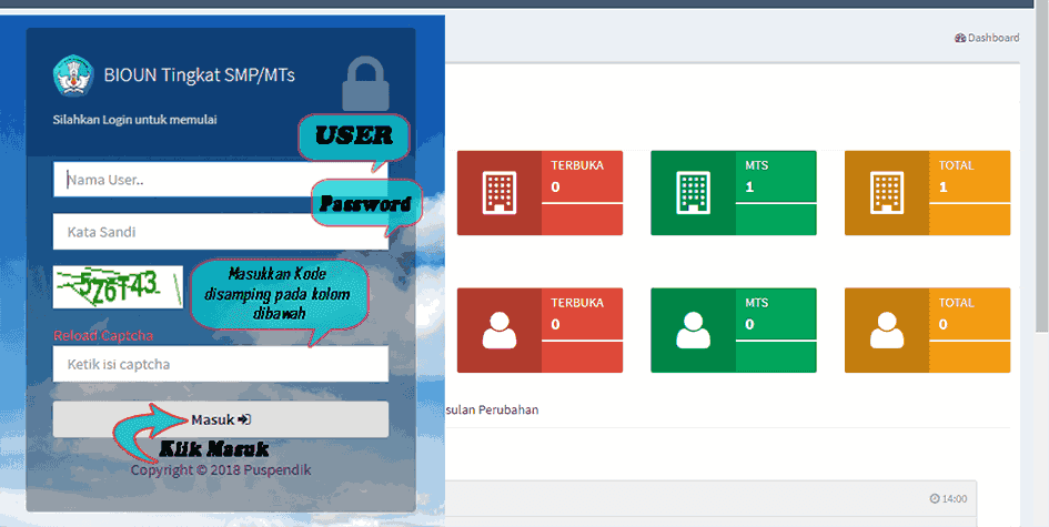 Untuk cara loginnya silahkan perhatikan langkah dibawah ini, BIOUN yang kami gunakan menggunakan BIOUN SMP :