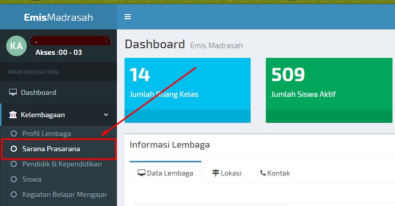 4. Selajutnya akan muncul beberapa menu. Klik pada Menu Sarana Prasaran.