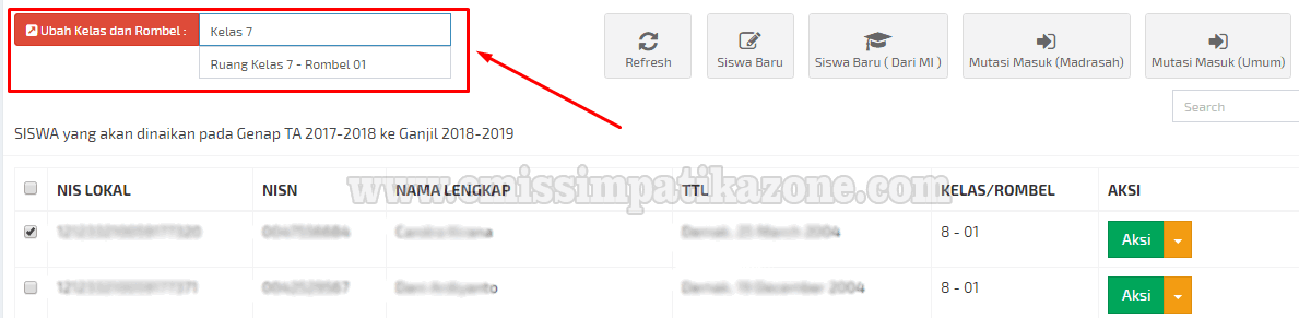 Secara otomatis jika anda menaikkan kelas maka anda juga harus menentukan rombelnya.