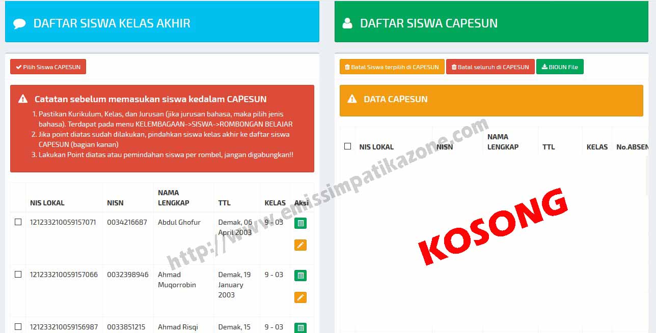 capesun tidak ada nama siswa kosong tapi di sebelah kiri bagian siswa