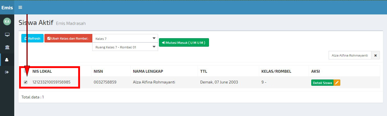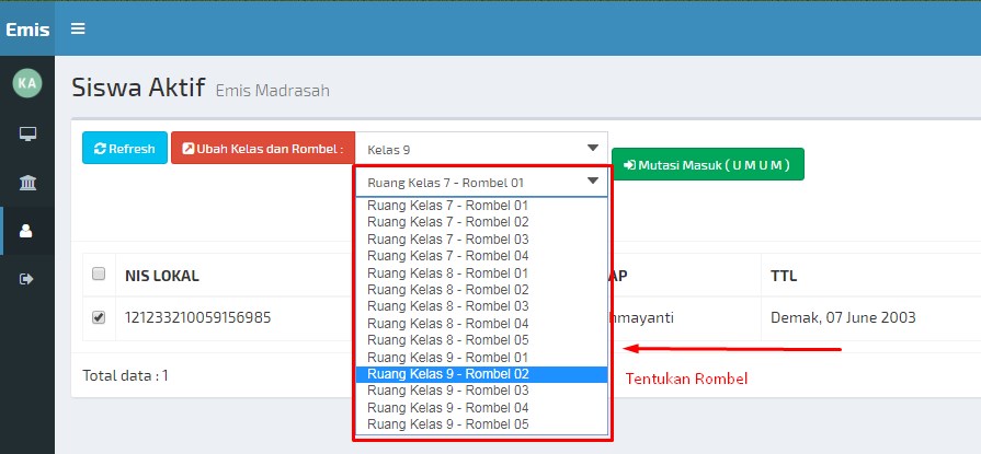 Data siswa ini nantinya akan digunakan sebagai Acuan dalam mengatur Rombel atau kelas persiswa.