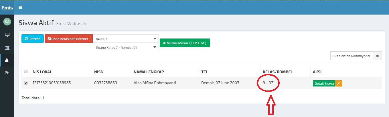 14. Selesai. Lakukan pada tiap siswa aktif hingga semua siswa memilik kelas dan rombel semua.