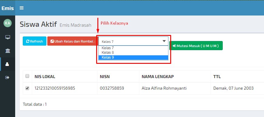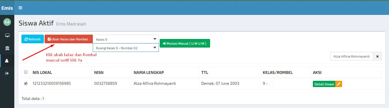 Cara yang kami gunakan adalah cara yang tergolong cepat, karena sekali klik ada 10 Siswa yang berubah menjadi siswa yang memiliki Kelas atau rombel.