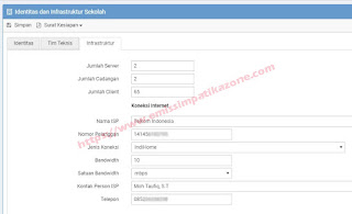 Catatan : Isikan data sarana prasarana seperti server dan client. Kemudian data koneksi internet seperti digambar.