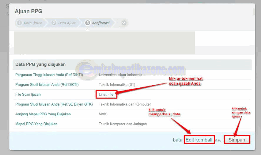 - INGAT !!! Jika Status akun simpatika anda berhak PPG maka ssilahkan dilanjutkan dengan mengisikan data ijazah pada kolom yang tampil