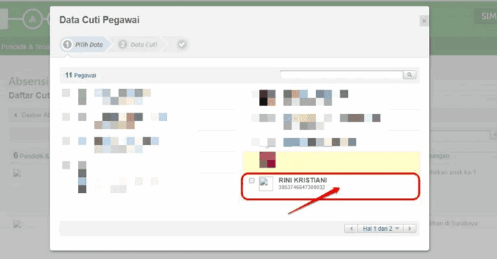 - Klik menu “Ubah Data Cuti” atau “Hapus Data Cuti”